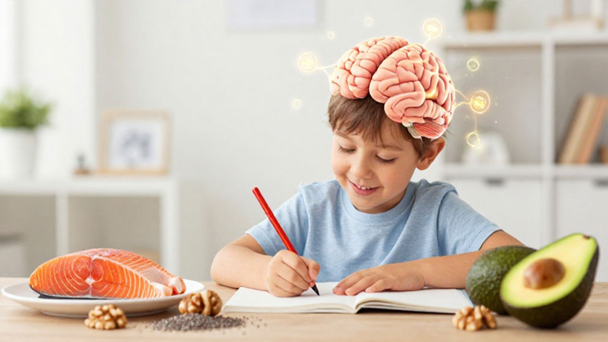 Omega-3, terutama DHA (dokosaheksaenoat), adalah komponen penting dari sel otak dan retina mata. DHA membantu memperkuat koneksi sinapsis antara neuron, yang berperan dalam kemampuan belajar, memori, dan fungsi kognitif secara keseluruhan. Penelitian menunjukkan bahwa anak yang mendapatkan asupan DHA cukup memiliki kemampuan fokus lebih baik, daya ingat lebih kuat, dan risiko gangguan perilaku lebih rendah dibandingkan anak yang kekurangan nutrisi ini. Sumber omega-3 yang baik bagi anak meliputi ikan berlemak seperti salmon, sarden, dan makarel, serta suplemen berbasis minyak ikan yang diformulasikan khusus untuk anak.